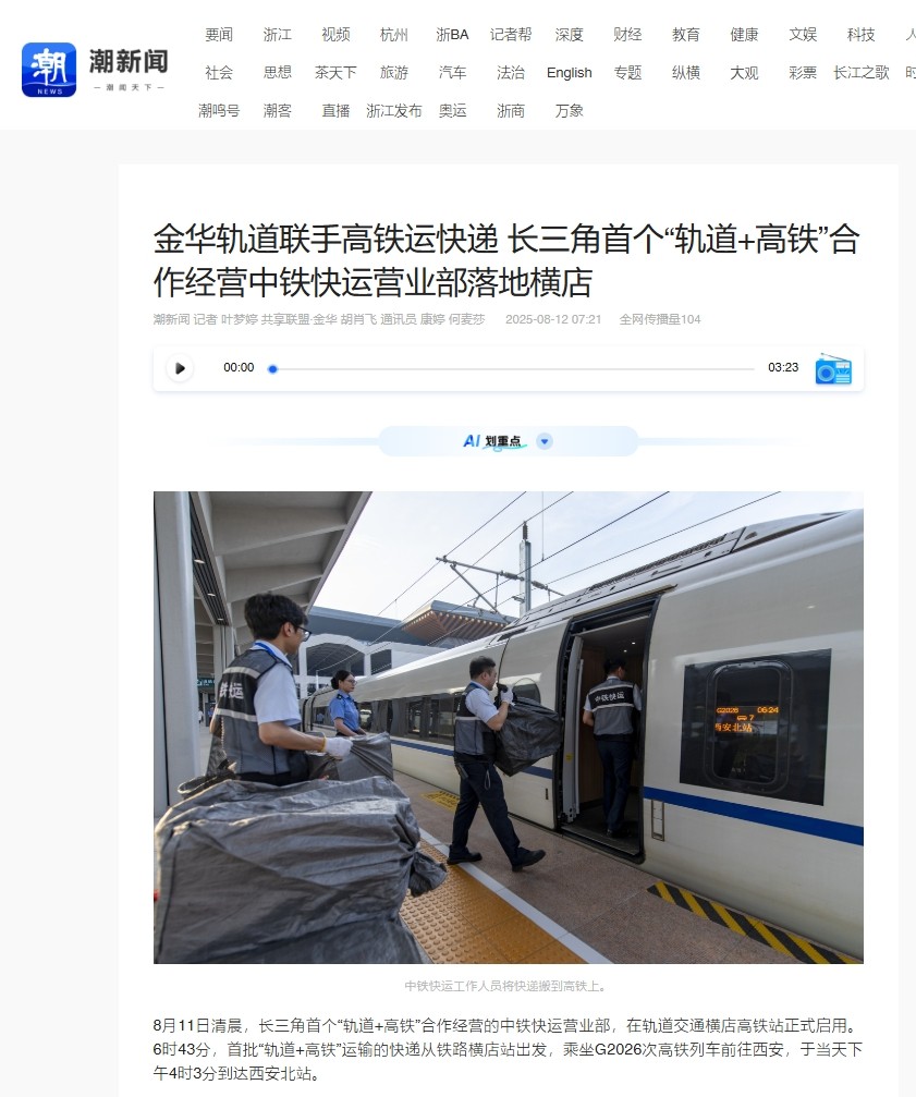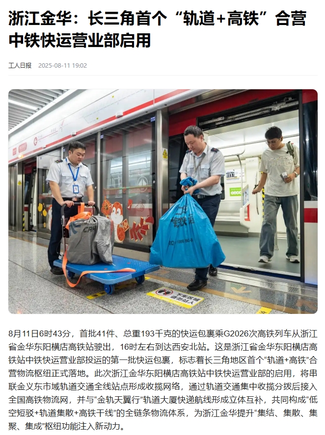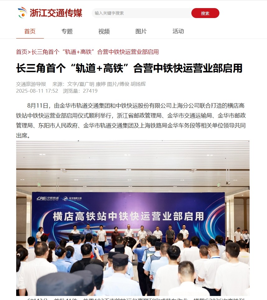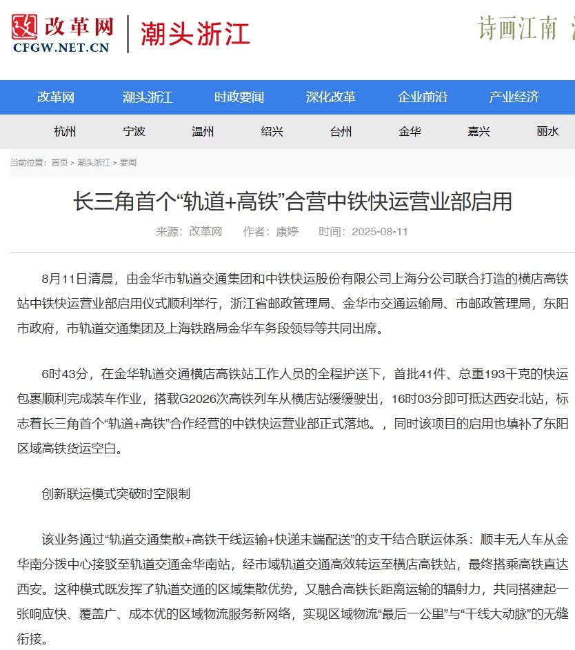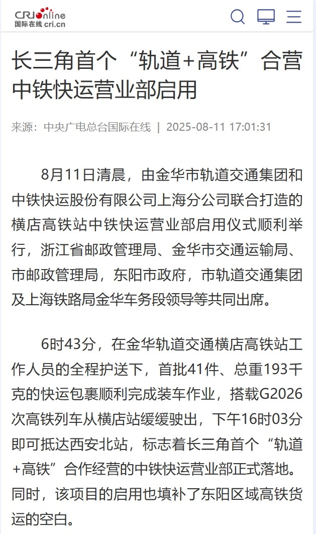 媒體關(guān)注 | 長三角首個“軌道+高鐵”合營中鐵快運(yùn)營業(yè)部啟用獲主流媒體報道